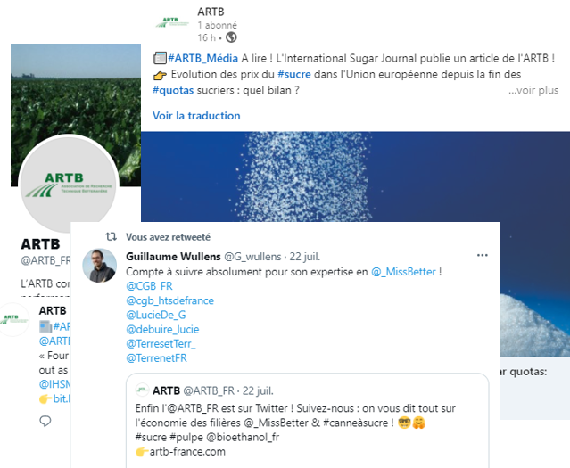 Pour suivre toutes les actualités économiques des filières betterave, canne, sucre et pour être informés des dernières analyses et publications de l’ARTB, suivez-nous sur sur les réseaux sociaux !